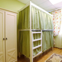 Уютный светлый четырехместный номер. В комнате 2 двухъярусные кровати со шторками и шкаф-гардероб. Общий санузел.