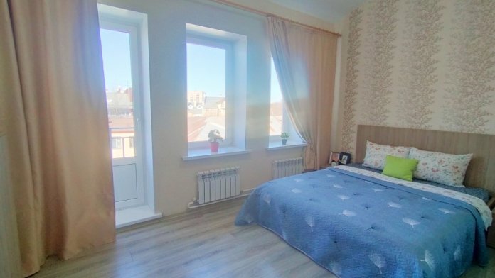 Этот вариант идеально подходит для командированных сотрудников (много раздельных широких двуспальных кроватей, высокие потолки), семей с послушными детьми (большое пространство, удаленность изолированных комнат), бизнес-поездок (центральное расположение, близость к крупным производствам и расположение на главной магистрали города с окнами во двор; шустрый Wi-Fi, smart- тв).