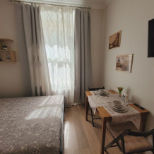 В квартире имеется все необходимое для комфортного проживания. Двуспальная кровать IКЕА и раскладное кресло 80 см, постельные принадлежности, полотенца, средства гигиены, фен, утюг, интернет, телевизор. В кухонной зоне имеется микроволновка, индукционная плита с набором посуды для приготовления, холодильник, столовая посуда и приборы. В квартире имеется стиральная машина.