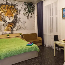 - В студии: очень большая удобная двуспальная кровать + разборный диван.