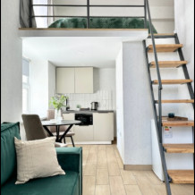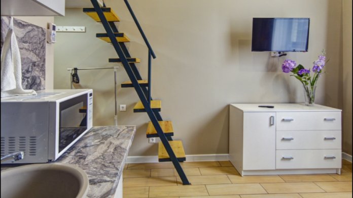 Для бронирования доступны апартаменты-студия, оснащенные всем необходимым для комфортного проживания. В апартаментах для пользования гостей: полотенца, постельное белье, которое мы стираем для Вас в прачечной, чай, кофе, сахар. В санузле туалетно-косметические принадлежности, фен. Кухня с плитой, всей необходимой посудой, холодильником, микроволновкой и чайником.