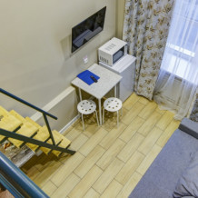 Профессиональная уборка горничными перед каждым заездом гостей. В общей зоне отеля есть стиральная машина, гладильная доска, утюг. Есть мягкая зона ожидания, где можно подождать заселения если вы приехали раньше, бесплатная камера хранения и общий туалет. Бесплатный Wi-Fi и городская парковка.