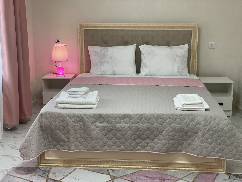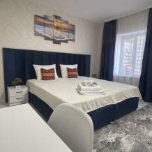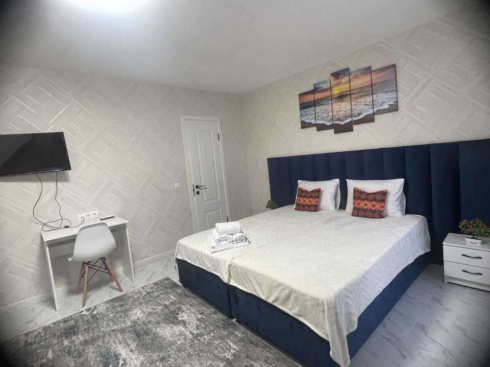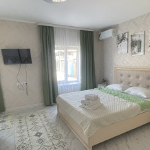 В номере вас ждет: двуспальная кровать с постельным бельем, набор полотенец, прикроватные тумбы со светильником, письменный стол со стулом, шкаф для одежды, телевизор, Wi-Fi, кондиционер, свой санузел.