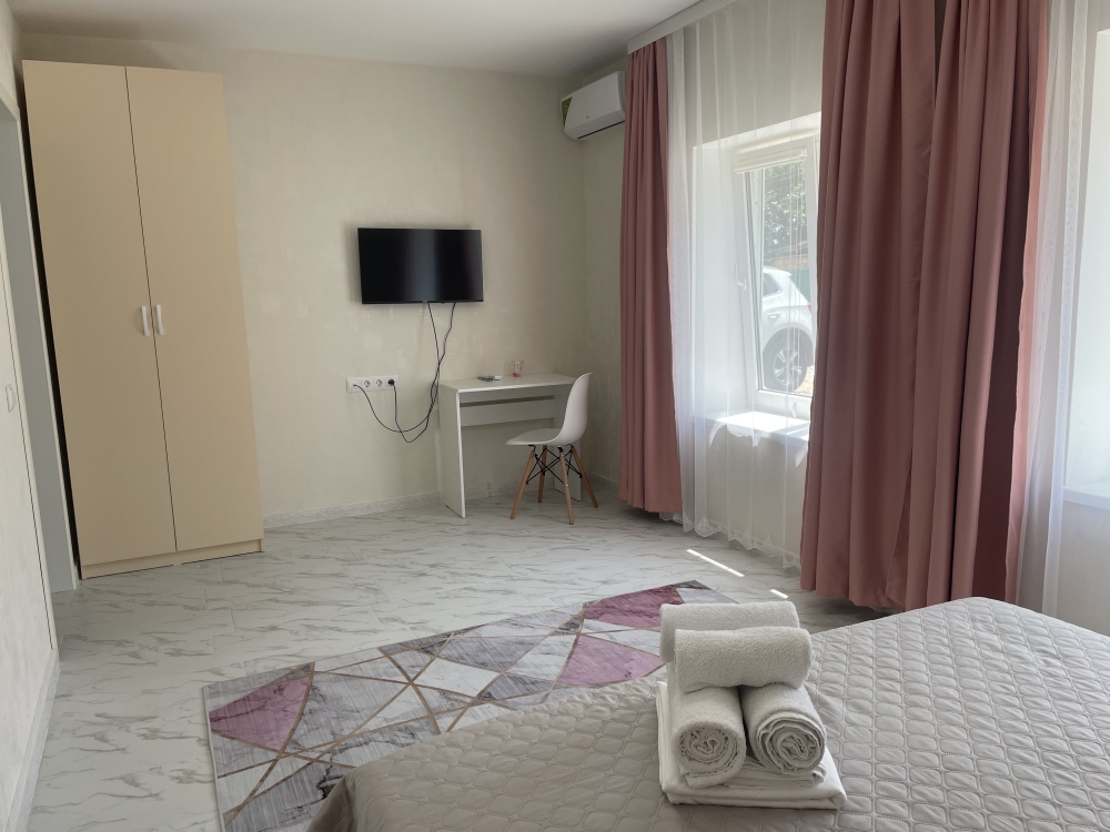 В номере есть телевизор, кондиционер, рабочий стол и стул, трехстворчатый шкаф,Wi-Fi.