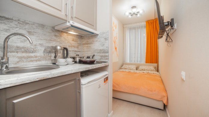 Студия оборудована всем, что нужно для Вашего отдыха: телевизор, чистое постельное белье из прачечной, оборудованная кухня, гладильные принадлежности, фен, стиральная машина, бесплатный Wi-Fi. Вам не придется срочно бежать в магазин за кружками или полотенцем – мы уже позаботились обо всем.