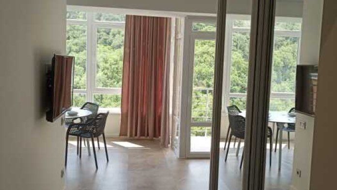 Апартамент со своим балконом, кухней и санузлом. Есть все необходимое для комфортного проживания: двухспальная кровать с ортопедическим матрацом, телевизор, шкаф, кондиционер-инвертор, фен, Wi-Fi, холодильник, микроволновая печь, чайник, электроплита, на кухне вся необходимая посуда, стиральная машина с гладильной доской и утюгом, санузел оснащен теплыми электрическими полами, при необходимости предоставляем дополнительное спальное место. Балкон оснащён стульями и столиком.