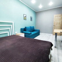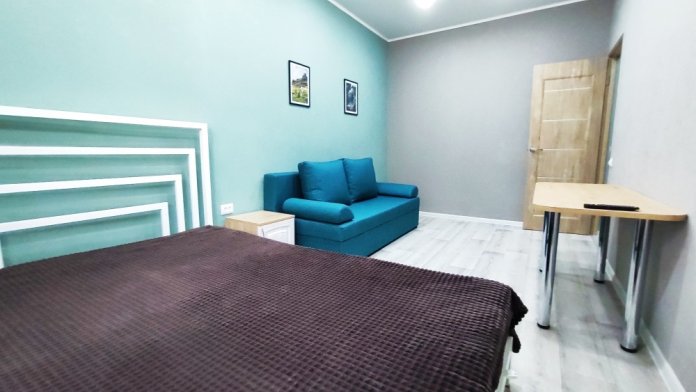 Основное пространство студий зонировано с помощью функциональной мебели: комфортная кровать с качественным матрасом. Удобные столы делают студии идеальными для тех, кто работает удаленно. Современные ванные комнаты отличаются качественной отделкой и оборудованы душевыми.
