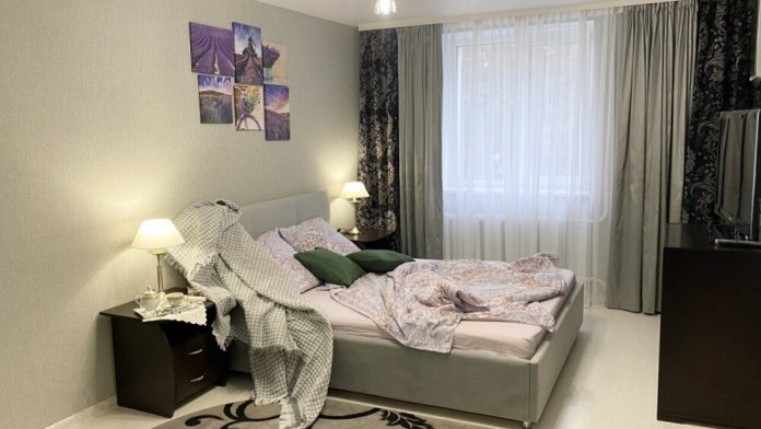 В квартире два двуспальных места (кровать и раскладной диван). В квартире выполнен современный качественный ремонт. Установлена система фильтрации и очистки воды, Вам не надо беспокоиться о питьевой воде. Бытовая техника: стиральная машина, с функцией сушки, микроволновая печь, тостер, холодильник, электрочайник, утюг, фен. Для Вашего комфорта есть кофе-машина с запасом молотого кофе, чтобы Вы утром могли насладиться чашечкой ароматного напитка.