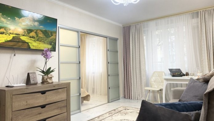 Бытовая техника: огромный SМАRТ ТV, онлайн кинотеатр, YоuТubе, Кинопоиск, Меgоgо, 250 каналов кабельного ТV-что не даст Вам скучать, Вы можете смотреть любимые фильмы и наслаждаться любой музыкой, холодильник, телевизор, микроволновая печь, кофемашина с запасом ароматного кофе, посуда, стиральная машина с функцией сушки. Выглаженное, чистое и приятно пахнущее х/б постельное белье и комплект пушистых полотенец (обработка после стирки высокотемпературным паром).