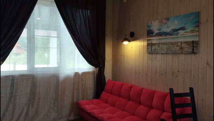 В доме имеются 2 большие комнаты: одна спальня с большой двухспальной кроватью, а вторая гостиная-кухня с удобным диваном для гостей. В санузле есть душевая кабина и инфракрасная сауна для Вашего комфорта.