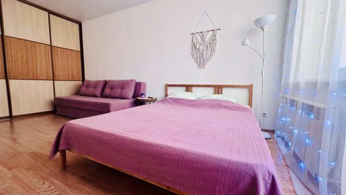 Для Вашего удобства: чистое и глаженное постельное белье из 100% хлопка (никакой синтетики) и полотенца для каждого гостя, интерактивное ТВ, Wi-Fi, СМА, микроволновая печь, холодильник, чайник (вся необходимая посуда), гладильная доска, утюг, фен, 2-спальная кровать (160-200), ортопедический матрас, 2-спальный диван (140-200).