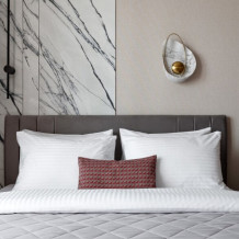 — в зоне сна размещена двуспальная кровать (160x200) с ортопедическим матрасом и белоснежным постельным бельем, ТВ со Smart-TV, Wi-Fi, кондиционер. Для хорошего сна предусмотрена штора блэкаут;