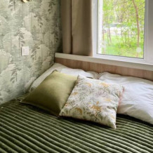 Уютная студия для одного гостя, в которой есть все необходимое для комфортного проживания: полутороспальная кровать, телевизор, холодильник, стиральная машина, микроволновая печь, электроплитка, фен и многое другое.