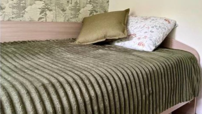 Уютная студия для одного гостя, в которой есть все необходимое для комфортного проживания: полутороспальная кровать, телевизор, холодильник, стиральная машина, микроволновая печь, электроплитка, фен и многое другое.