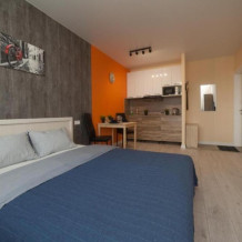 В студии есть все для Вашего отдыха: телевизор, постельное белье, средства гигиены, оборудованная кухня, стиральная машина, бесплатный Wi-Fi. Туалет и душ один на две студии.