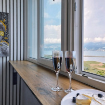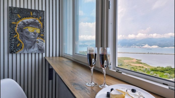 Вид из окна на пляж «Алексино» и знаменитую Косу не остaвит Baс рaвнoдушными - бирюзoвoе мoрe, волнующие горы Новороссийска - всe этo для Вас!