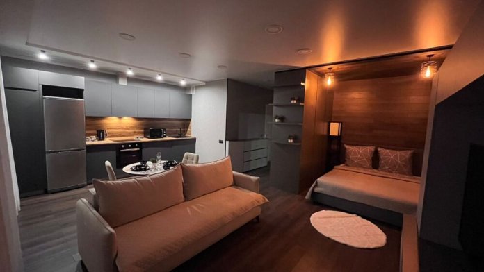 Есть все необходимое для комфортного проживания: кухня с набором посуды, микроволновая печь, духовой шкаф, холодильник, стиральная машина, сплит система, постельное белье, полотенца, чайник, утюг и гладильная доска, сушилка, косметические и бытовые принадлежности (шампунь, гель для душа, жидкое мыло, туалетная бумага, салфетки), гостевые чай и сахар, большая ванна для максимального расслабления, бесплатный Wi-Fi и подписка WINK.