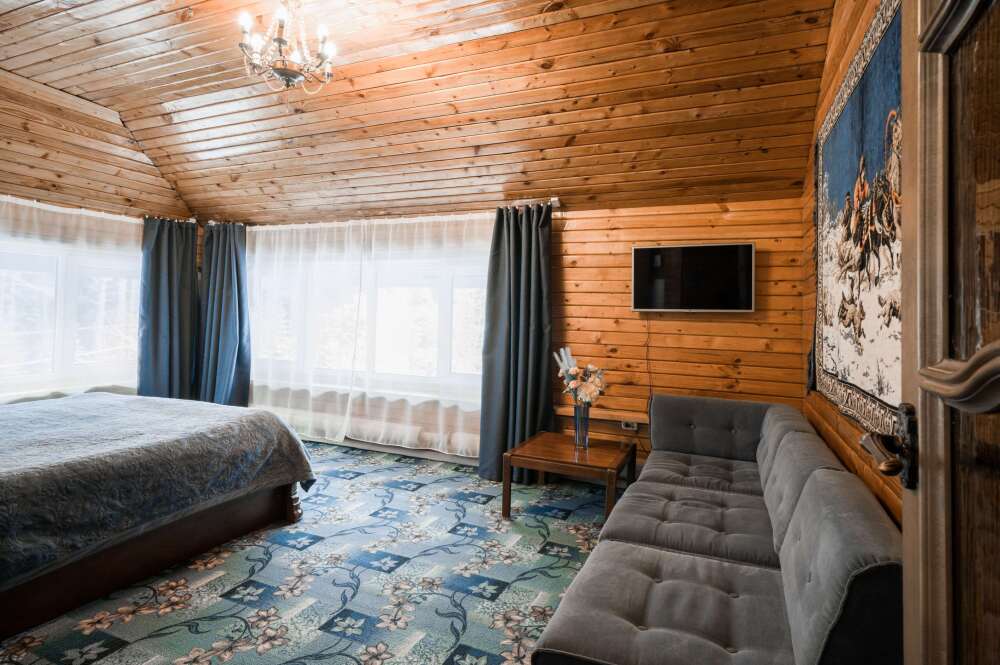 Для вашего удобства предусмотрены: удобные диваны, двуспальная кровать, Wi-Fi, 2 телевизора, кондиционер, микроволновка, самовар, плита, пылесос, сушилка, холодильник, стиральная машина, душевая кабина с встроенной ванной.