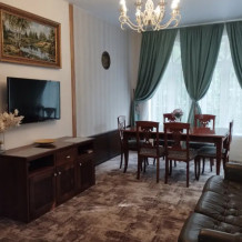 В доме имеется: 2 этажа - 4 жилые комнаты, одна из них является большой гостиной, совмещенной с небольшой кухней. При входе в дом вы попадаете в атмосферу большого холла-прихожей с классической лестницей и балюстрадой.