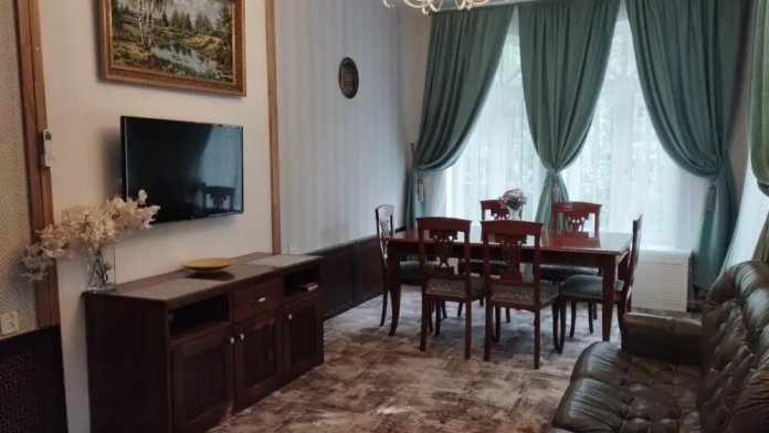 Из техники: 2 телевизора, холодильник, микроволновка, индукционная плита, кофеварка, электрочайник, стиральная машина. Кондиционер.