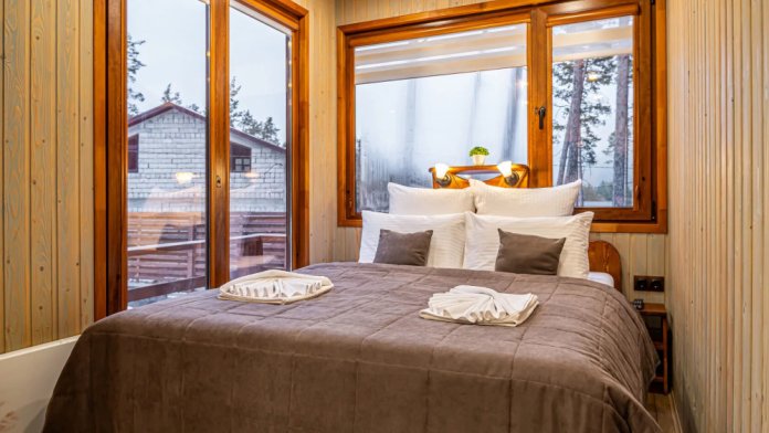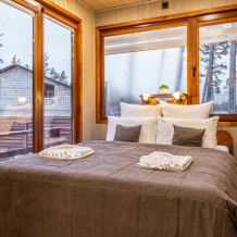 Деревянный дом вмещает до 5 гостей. Площадь 55 кв. м., 2 этажа. В доме 2 комнаты, из них 1 спальня. Не охраняемый огороженный двор.