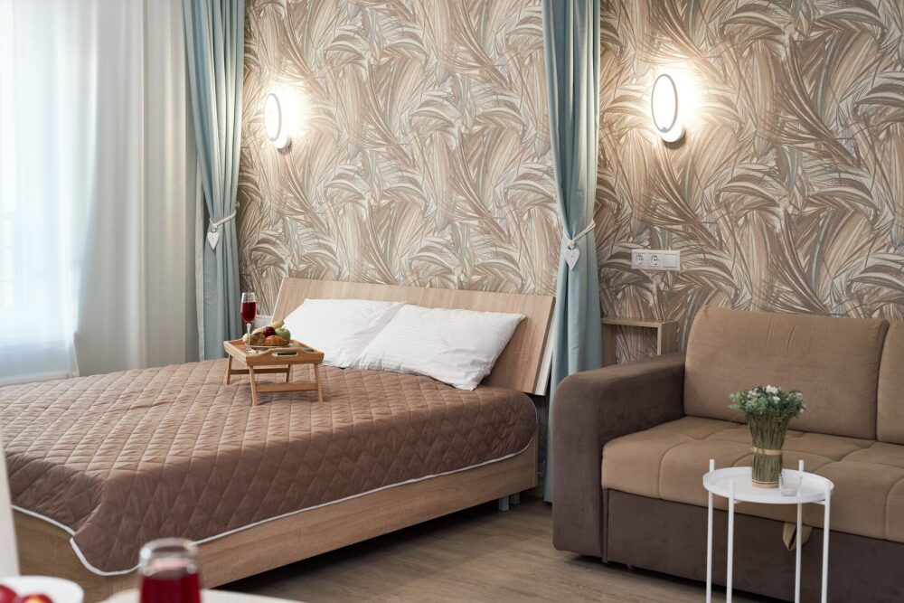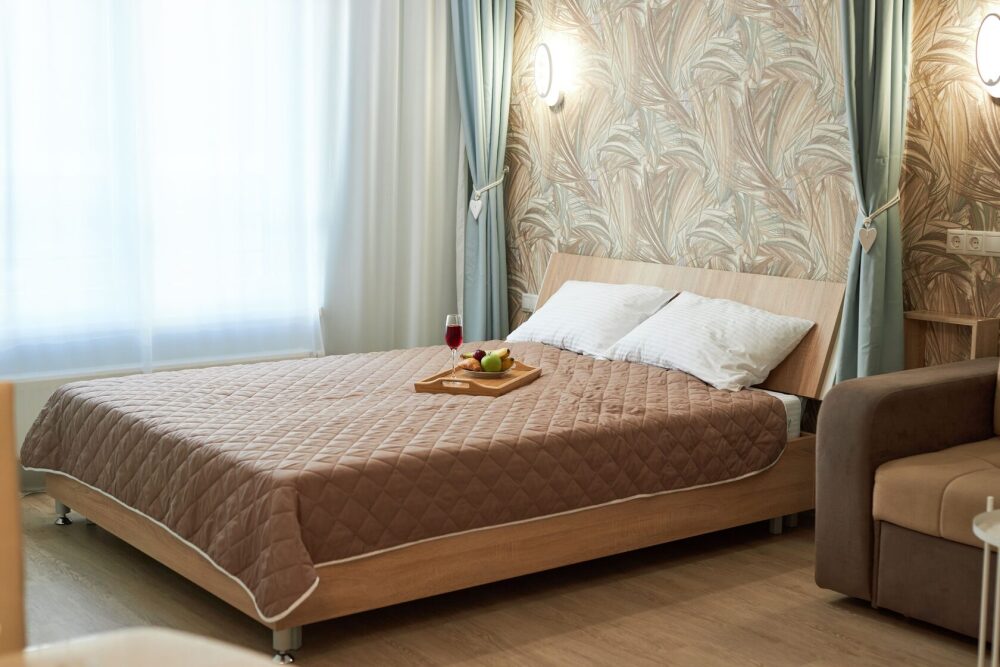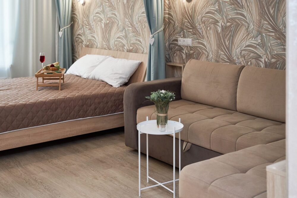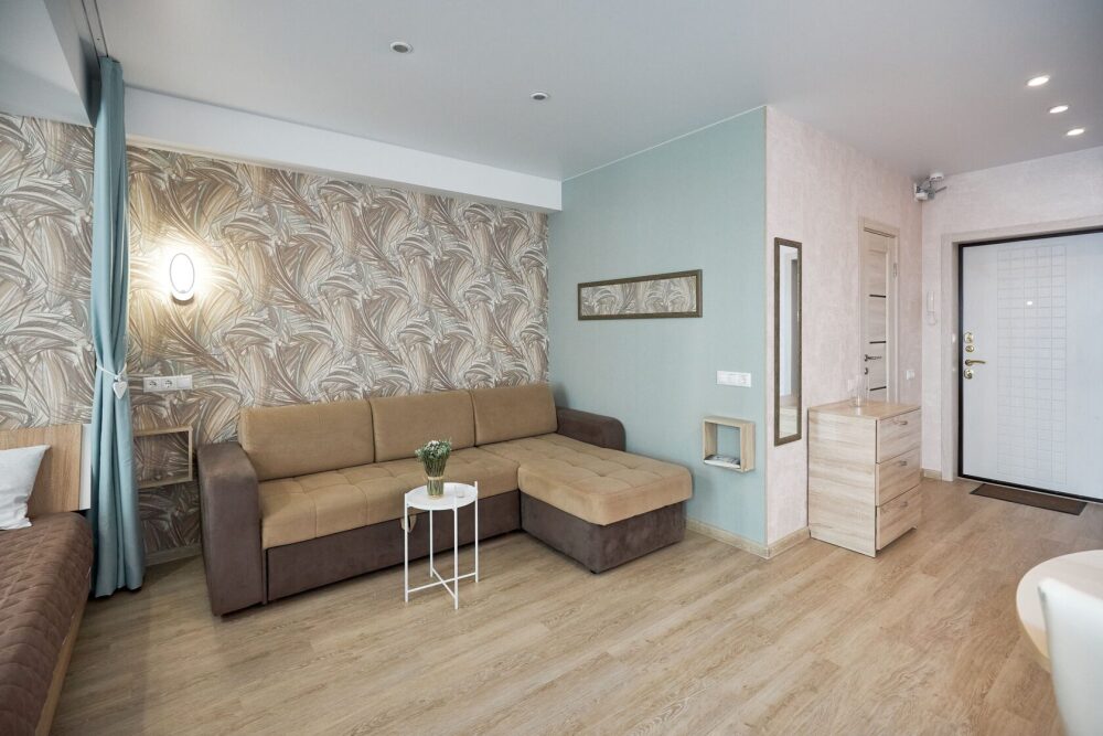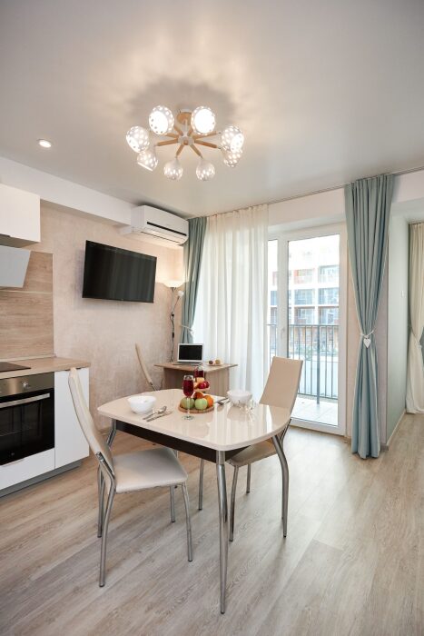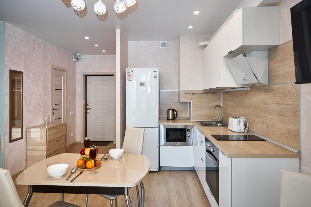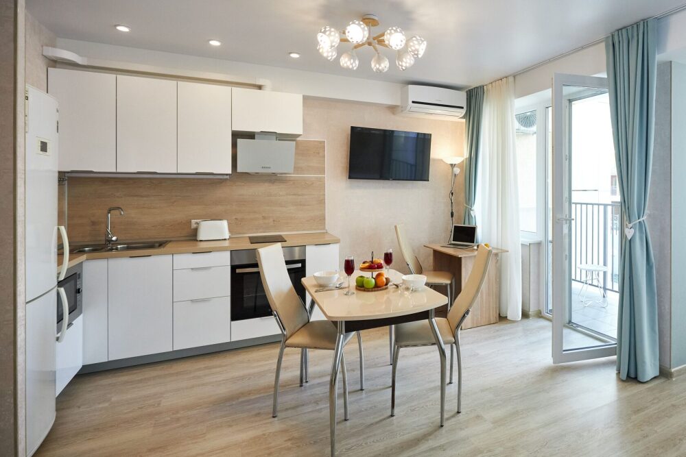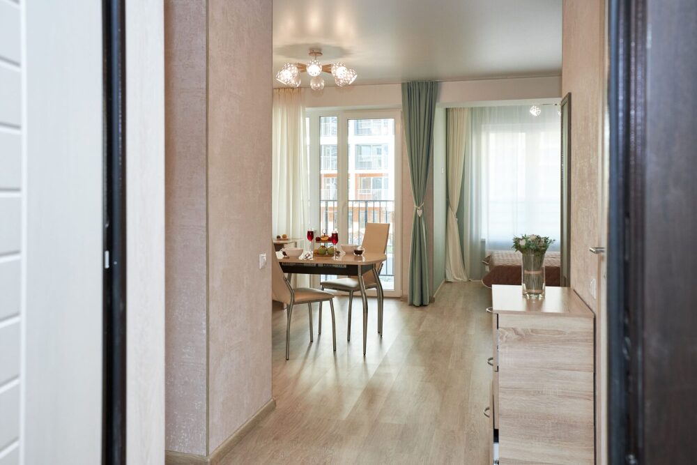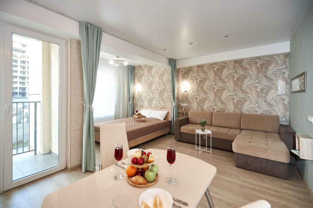 В квартире имеется всё необходимое для комфортного проживания семьи из 2-4 человек. Гостям предоставляется двухспальная кровать и удобный двухместный диван-кровать, телевизор c плocким экpаном, Smаrt Тv и кaбельными канaлами, Wi-Fi, кондиционер, балкон с мебелью. Имеется кухонная зона со всеми принадлежностями. Чайник, микроволновая печь, тостер, духовой шкаф, столовые приборы и посуда, варочная поверхность для самостоятельного приготовления еды. Санузел оснащен раковиной с зеркалом, полноценной ванной, унитазом и гигиеническим душем. В коридоре имеется отдельная гардеробная комната и напольная вешалка для вещей.