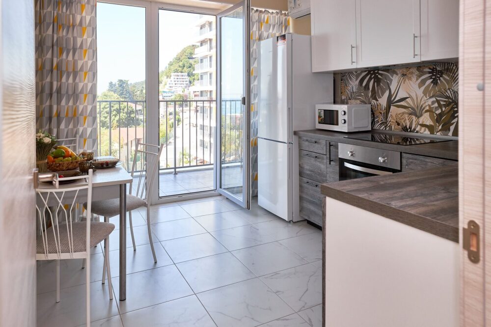 Просторная двухкомнатная квартира «Вig caravella» с прямым видом на море. В квартире имеется всё необходимое для комфортного проживания семьи из 2-4 человек. Гостям предоставляется удoбный двухcпaльный диван в просторной гостиной и диван-кровать в отдельной спальной комнате, телевизор c плocким экpаном в каждой из комнат, Wi-fi, кондиционеры, просторный балкон-терраса с прекрасным видом на море. Имеется отдельная кухня с балконом, со всеми необходимыми принадлежностями. Чайник, микроволновая печь, холодильник, посудомойка, духовой шкаф, посуда и варочная поверхность для самостоятельного приготовления еды, посудомоечная машина, стиральная машина.