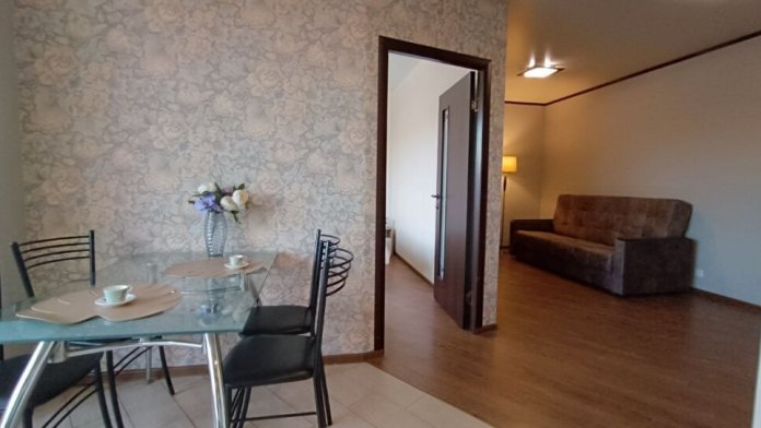 В квартире есть все необходимое для проживания 4-х человек: сплит-система, ортопедическая двуспальная кровать, двуспальный диван, вместительный шкаф, Wi-Fi, TV со множеством каналов, гладильная доска, утюг, сушилка, постельное белье, комплект мягких пушистых полотенец.