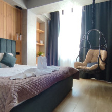 В квартире: спальня с кроватью king size, гостиная с обеденной зоной и кухня. Идеальное место для романтических свиданий, и проживания в отпуске , как на пару дней, так и на несколько недель. Восхитительный вид на город , Кавказский хребет и реку Подкумок. Есть стиральная машина, посуда, постельное, полотенца, интернет, 3 телевизора