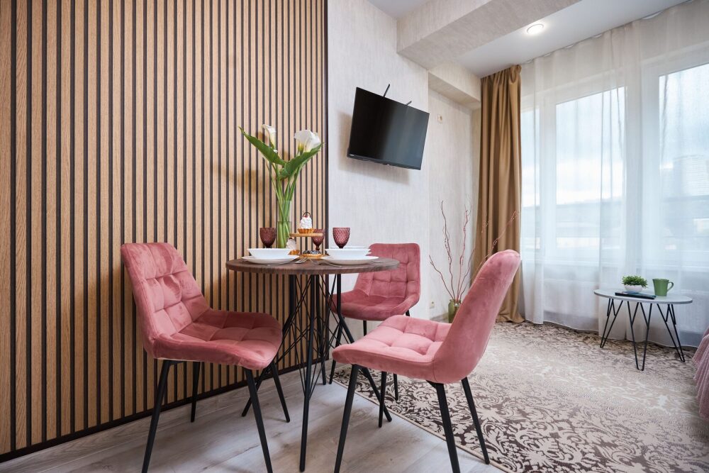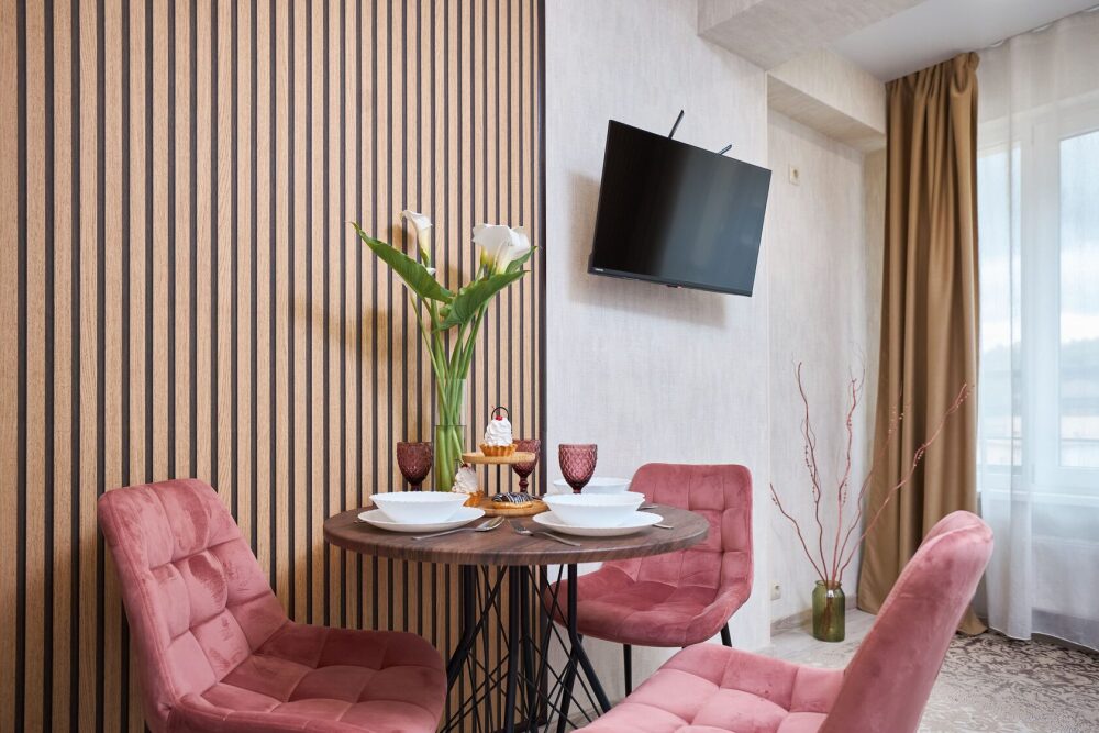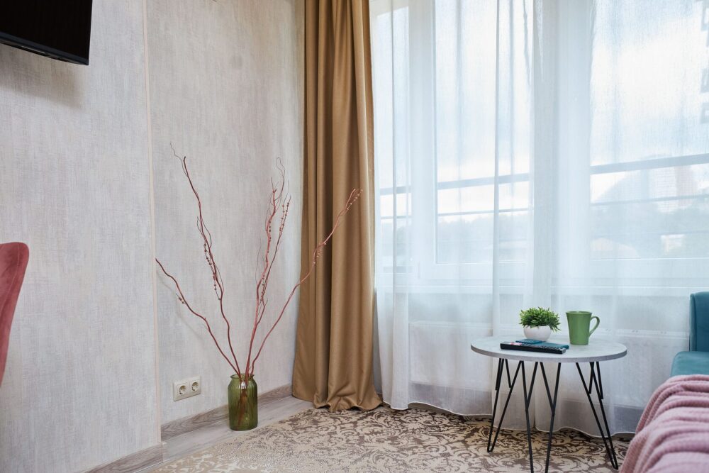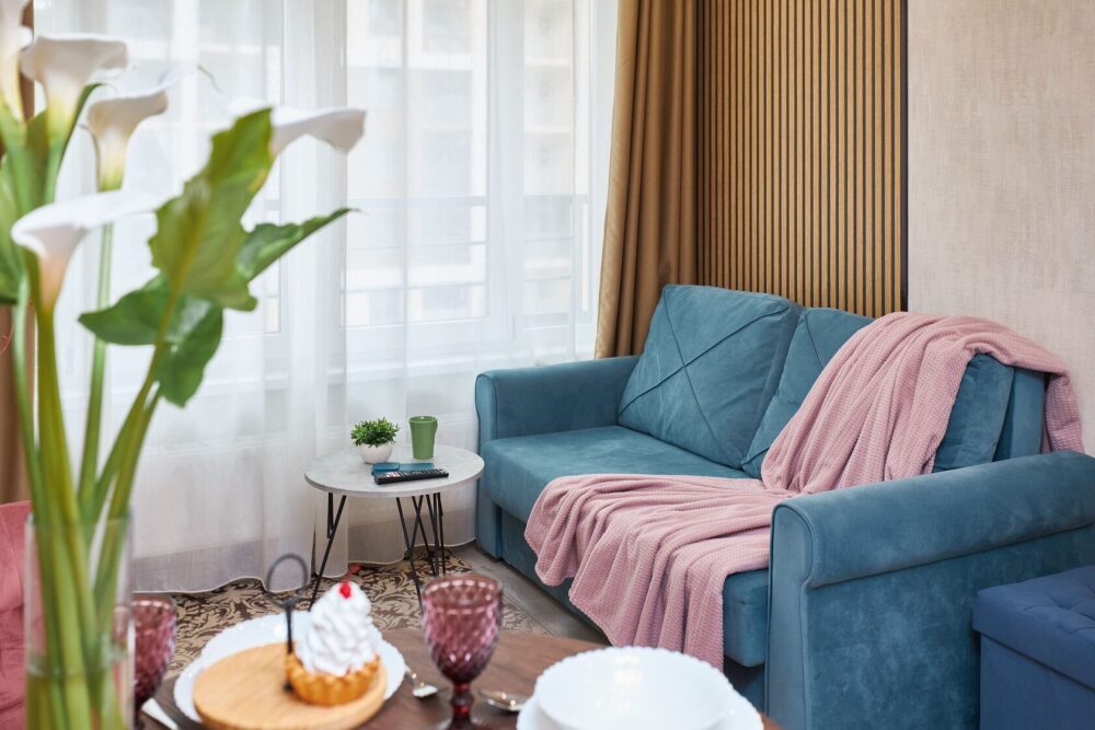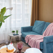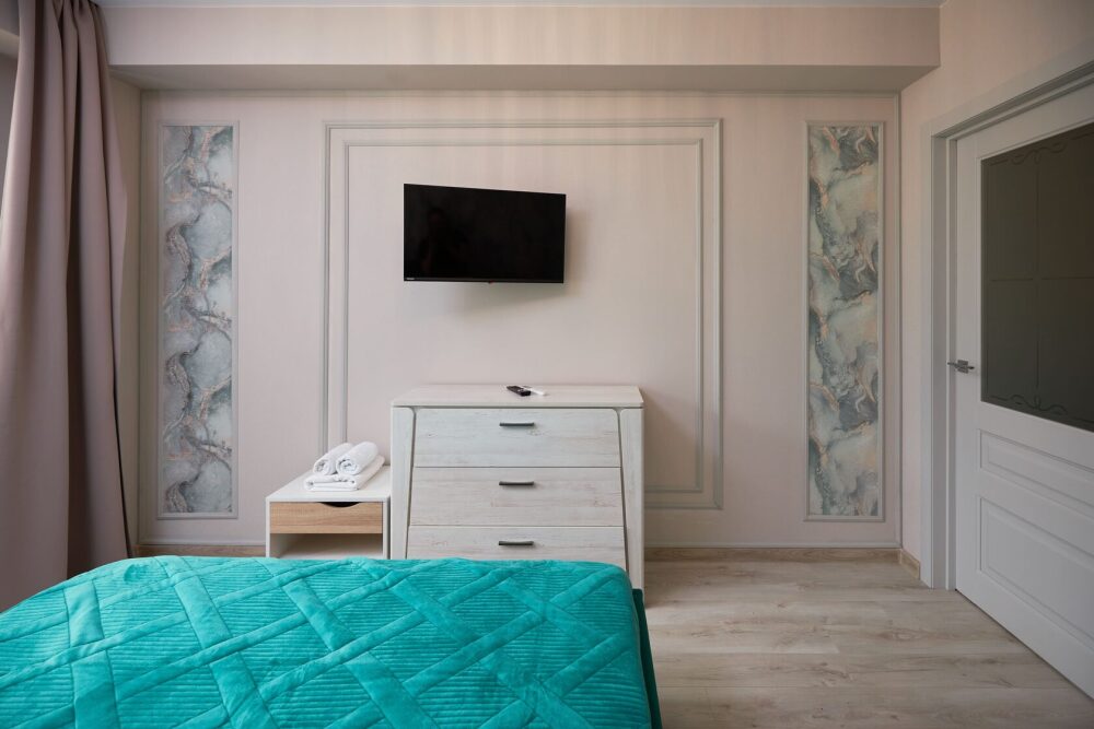 Сдаётся евро-двухкомнатная квартира «Rainbow house», с дизайнерским ремонтом, и боковым видом на территорию и горы. В квартире имеется всё необходимое для комфортного проживания семьи из 2-5 человек. Гостям предоставляется двухспальная кровать в отдельной спальне, кресло-кровать и удобный двухcпaльный диван в кухне-гостиной, 2 телевизора c плocким экpаном, Smаrt Тv и кaбельными канaлами, Wi-Fi, кондиционер, балкон с мебелью. Кухня со всеми принадлежностями: электрический чайник, микроволновая печь, столовые приборы и посуда, варочная поверхность для самостоятельного приготовления еды, обеденный стол и стулья. Санузел оснащен раковиной с зеркалом, душевой кабиной, полотенцесушителем, унитазом и стиральной машиной.