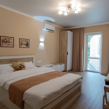 Студия оснащена всем необходимым для комфортного проживания, включая двуспальную кровать с комфортным матрасом и тахту для третьего гостя, сплит систему, телевизор , микроволновка, чайник. На кухне Вы найдете всю необходимую посуду и другие предметы быта, которые могут пригодиться во время Вашего пребывания. Постельное белье и полотенца уже подготовлены для Вашего удобства. Так же имеются утюг и стиральная машина.
