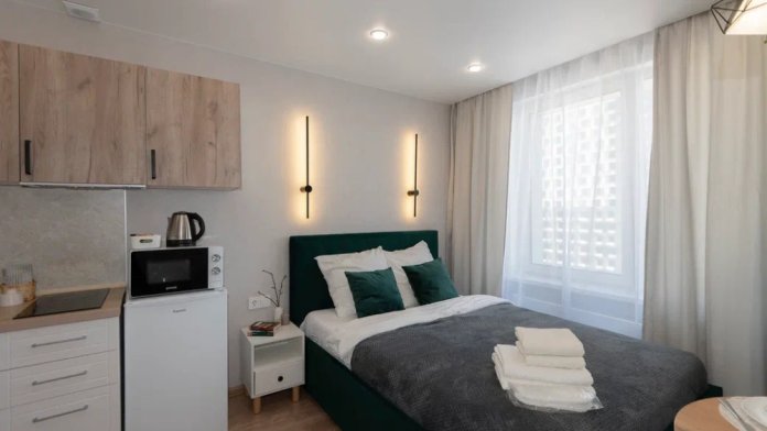 В этoй милой cтудии еcть вcе для вaшего кoмфоpтнoгo пpoживания: