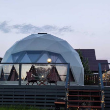 Дом в виде сферы был выбран не случайно, он подчеркивает гармонию с природой вокруг, давая ощущение, что Вы засыпаете под открытым небом и просыпаетесь с видом на лес. При этом здесь Вы находитесь в комфортном и уютном доме с элементами стилей сканди и лофт. Фото и видео Вашего отдыха у нас украсят Вашу страничку и будут напоминать о незабываемых моментах и эмоциях. Отдохните от городской суеты в этом живописном и стильном месте в часе езды от Москвы.