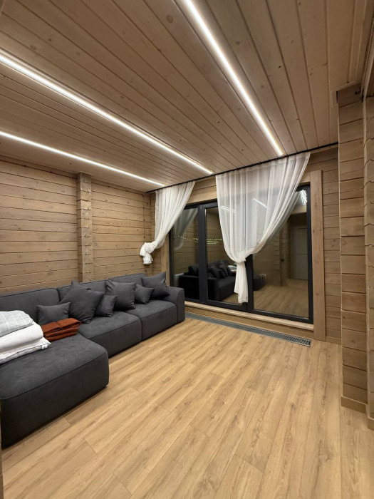 В доме 3 отдельные комнаты + кухня-гостиная с комфортабельным раздвижным диваном