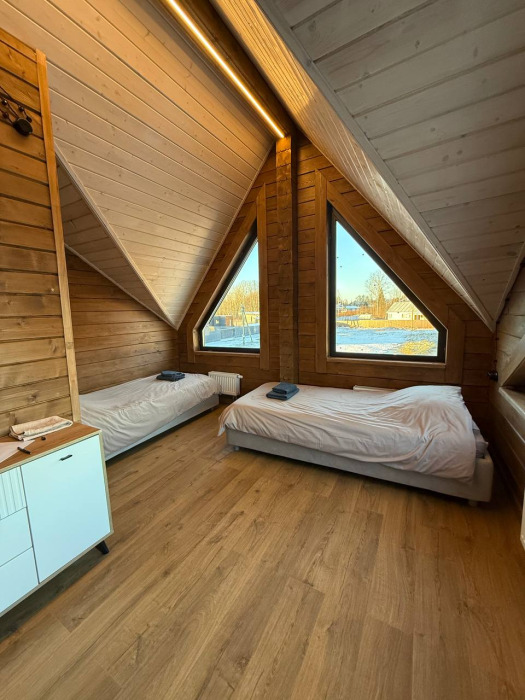 Дом отлично подойдет для семейного отдыха или небольшой компании друзей - его вместимость до 6-ти человек, включая детей. В доме две отдельные спальни и кухня-гостиная с раздвижным диваном.