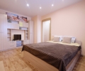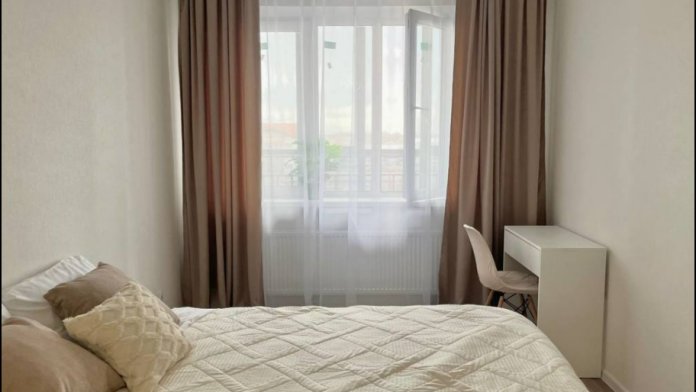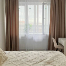 Кухня-гостиная и спальня. Квартира светлая, уютная. Есть все необходимое для комфортного проживания. Удобная двуспальная кровать с новым матрасом, свежее постельное белье, полотенца, фен, туалетные принадлежности, барный холодильник, плита, посуда для приготовления и приема пищи, стиральная машина, телевизор, утюг.
