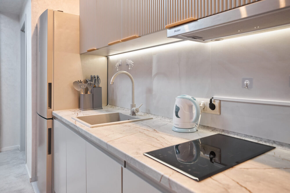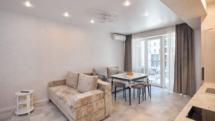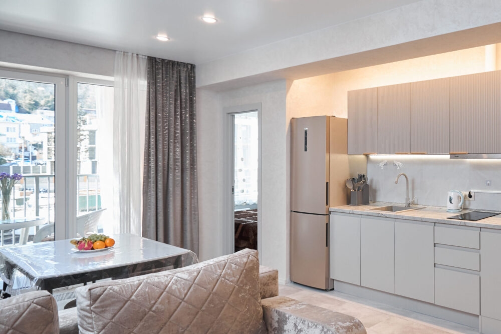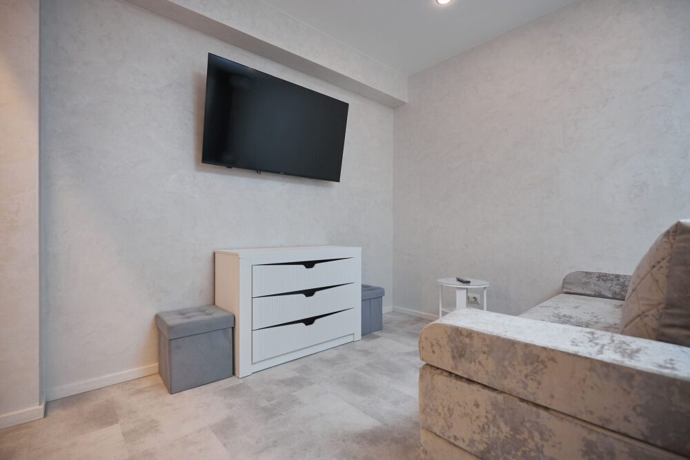 В квартире есть всё необходимое для комфортного проживания семьи из 2-6 человек. Из спальных мест гостям предоставляется двухспальная кровать в выделенной спальне и два раскладных двухместных дивана в кухне-гостиной. Телевизор c плocким экpаном, Smаrt Тv и кaбельными канaлами, Wi-Fi, кондиционер, балкон с мебелью. Имеется кухонная зона со всеми принадлежностями. Чайник, микроволновая печь, посудомоечная машина, столовые приборы и посуда, варочная поверхность для самостоятельного приготовления еды. Санузел оснащён душевой кабиной, раковинной с зеркалом, полотенцесушителем и унитазом.