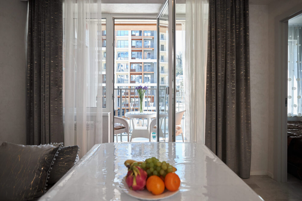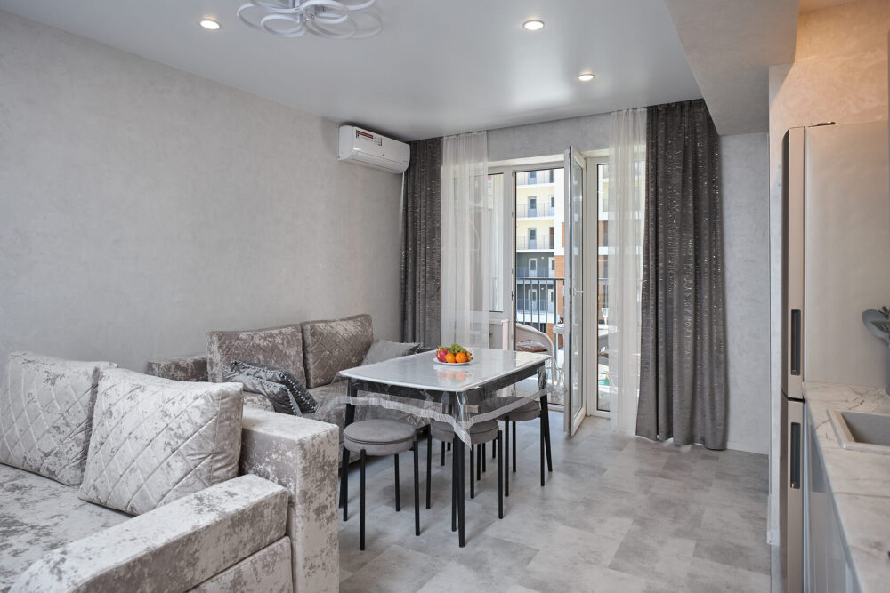 Сдается евродвухкомнатная квартира «Grey house» c боковым видом на море и горы в ЖК «Каравелла Португалии».