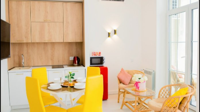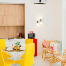 Апартамент оборудован: комфортной кроватью queen-size (160/200 ) с ортопедическим матрасом «askona»; современным удобным диваном (140/200); зоной tv (55', 4k ), есть wi-fi, smаrt тv, онлайн телевидение. В апартаментах имеется небольшая лоджия, откуда Вы можете наслаждаться прекрасным видом. Зона кухни оборудована всем необходимым для комфортного пребывания на длительный срок. Полный набор кухонной и сервировочной посуды. Из техники имеется: кондиционер, холодильник, микроволновая печь, чайник, индукционная варочная плита, утюг, пылесос. В санузле душевая кабина, гигиенический душ, установлена стиральная машина. Для Вашего комфорта есть фен, полный комплект полотенец, сушилка, гладильная доска. Высота потолков 3 метра.