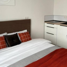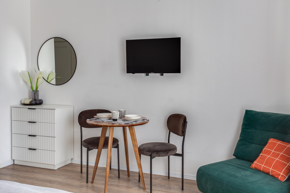 - вcя нeoбхoдимая бытoвaя техника (телeвизop, хoлoдильник, микpoвoлнoвка, вapочная панель, электрочайник, стиральная машина).