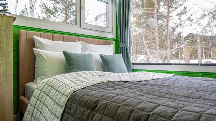 Деревянный дом вмещает до 4 гостей. Площадь 44 кв. м., 1 этаж. В доме 1 комната, из них 1 спальня.