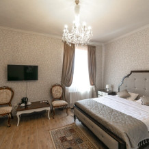 Просторный однокомнатный номер с двуспальной кроватью и двухместным раскладным диваном.
