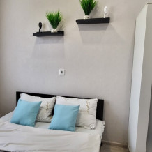 Сдаётся для проживания до двух гостей. Укомплектована двуспальной кроватью, постельным бельём, полотенцами, всей необходимой посудой для приготовления (кастрюля, сковорода) и потребления пищи (тарелки, чашки, столовые приборы). Телевизор, быстрый Wi-Fi, стиральная машинка, холодильник, микроволновая печь, чайник, печка всё в наличие.