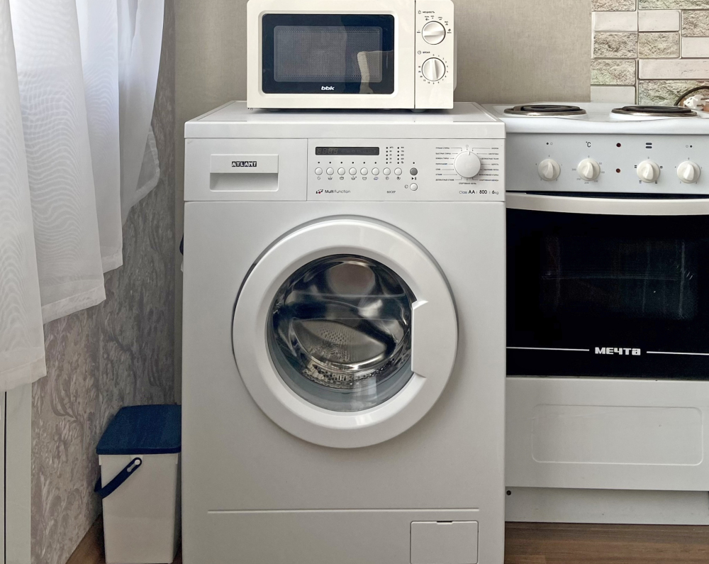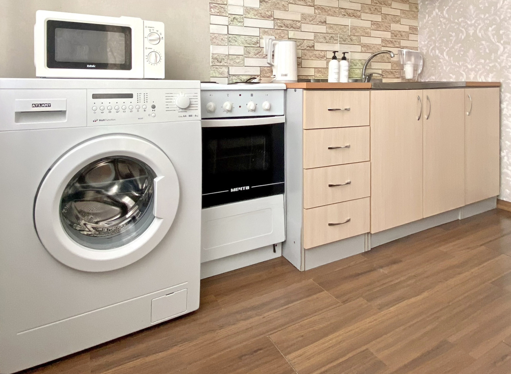 • Кухня: холодильник, плита, духовка, микроволновка, стиральная машина, чайник, необходимая посуда