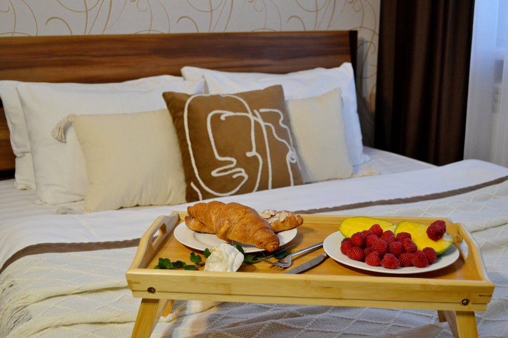 • Спальня: белоснежное бельё, одноразовые тапочки, утюг и гладильная доска
