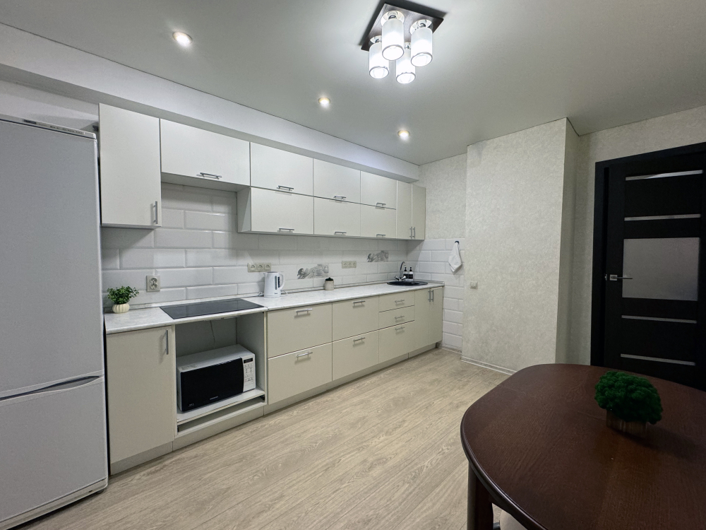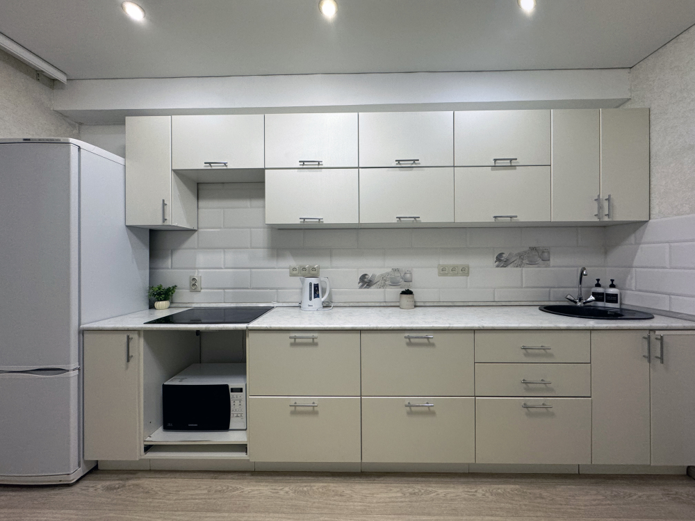 • Кухня: холодильник, плита, микроволновка, чайник, вся необходимая посуда