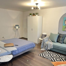 - Для Вашего комфортного отдыха и сна, мы оснастили квартиру двухспальной кроватью с ортопедическим матрасом, диваном , который раскладывается с ровным спальным местом 1.40*2.00 м. По умолчанию, когда бронируете на 2 гостей предоставляется 1 комплект постельного белья, дополнительный комплект 300 руб. Предупреждайте заранее.