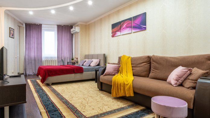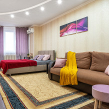 Квартира полностью меблирована и оснащена всем необходимым для комфортного проживания, включая средства личной гигиены. Кабельное телевидение, интернет Wi-Fi, сплит-система, оборудованная кухня посудой и техникой.