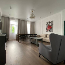 К услугам гостей 3 комнаты, оборудованная кухня и просторная ванная комната. Также телевизор со смарт ТВ и бесплатный WI-FI. Новые удобные кровати со спальными местами 160 на 200 и 140 на 200, комфортный диван 140 на 200. Апартаменты рассчитаны на комфортное размещение 4 взрослых и 2 детей после 12 лет (дети до 12 лет бесплатно без ограничений по количеству). Полностью оборудованная кухня со всей необходимой бытовой техникой: индукционная плита, микроволновая печь, электрочайник, холодильник, посуда и кухонные принадлежности, специи, соль, сахар, растительное масло, средство для посуды, губки. Ванная комната с ванной, стиральной машиной с сушкой, феном, детский горшок, детская накладка на унитаз.