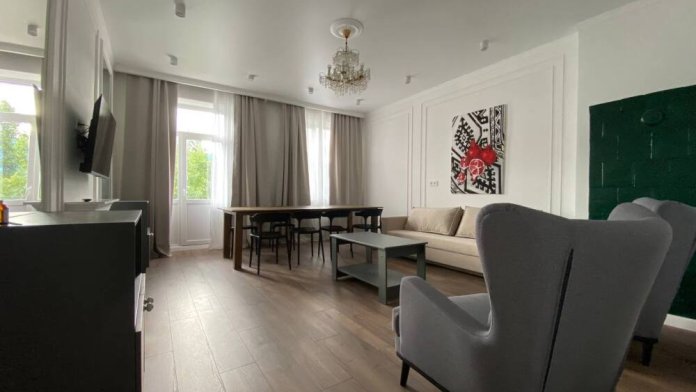 Стильные просторные апартаменты с балконом в историческом центре Черняховска, район водонапорной башни. В пешей доступности кафе, рестораны, достопримечательности города, парк и река.